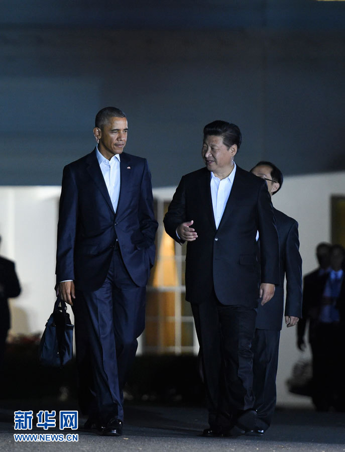 習近平國家主席が現(xiàn)地時間24日、米國ワシントンに到著した後、オバマ米大統(tǒng)領主催の小規(guī)模な晩餐會に出席した。會が始まる前、両國の國家元首がペンシルベニア通りからブレアゲストハウスに向かって散歩した。(編集JK)