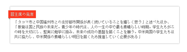 習(xí)主席は23日、米國ワシントン州タコマ市のリンカーン高校を訪問した。>>