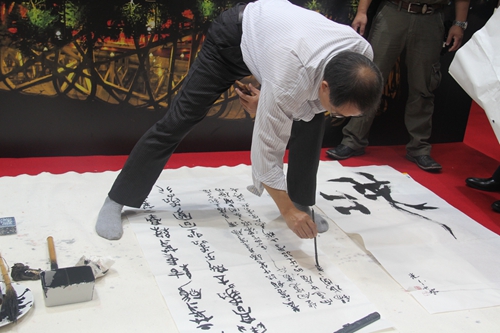 中國ブースで披露される書道