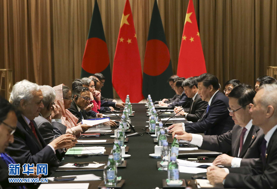 習主席は「中國側はバングラデシュを南アジアおよびインド洋地域の重要な協(xié)力パートナーと見なしており、バングラデシュ側とハイレベル交流を継続し、貿(mào)易?生産能力?エネルギー開発?インフラ整備など重點分野の協(xié)力を拡大することを望んでいる。雙方は重大な國際?地域問題で意思疎通と調(diào)整を継続する必要がある。バングラデシュの気候変動対策にできる限りの支援をしたい」と表明した。