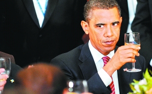 國連の晝食會(huì)で食事をするオバマ米大統(tǒng)領(lǐng)