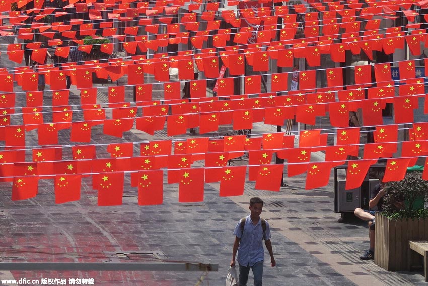 國慶節(jié)(建國記念日、10月1日)を控え、広西チワン族自治區(qū)桂林市では9月29日、市內の至る所で鮮やかな國旗が掲げられている。満ち溢れる祝日の雰囲気のなか、國慶節(jié)を迎えようとしている。人民網が伝えた。(編集JK)