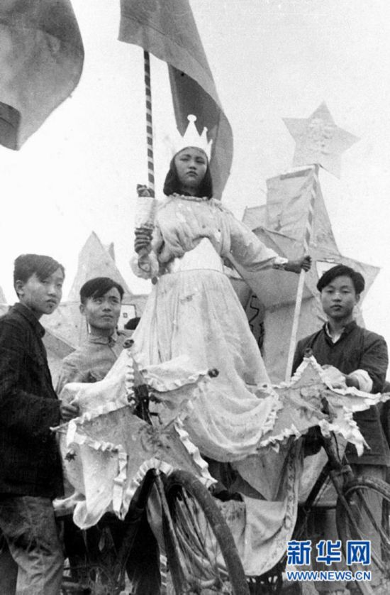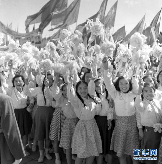 新華社の所蔵する貴重な歴史寫真によって、中華人民共和國成立初期に國慶節(jié)(建國記念日)を祝う人々の姿を窺うことができる。(編集NA)