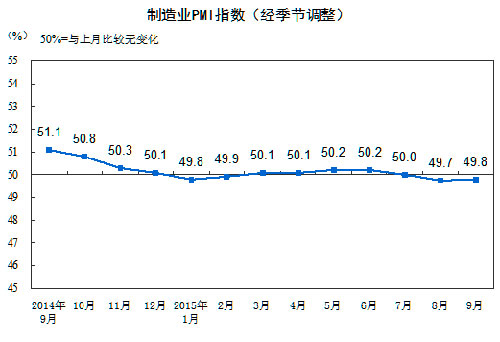 國(guó)家統(tǒng)計(jì)局の発表によると、今年9月の中國(guó)の製造業(yè)購(gòu)買擔(dān)當(dāng)者景気指數(shù)(PMI)は49.8%で、2カ月続けての下落を経て、前月より0.1ポイント微増した。企業(yè)規(guī)模では大企業(yè)が中小企業(yè)より良好だ。大企業(yè)は51.1%で前月比1.2ポイント増加。中企業(yè)は48.5%、小企業(yè)は46.8%だった。