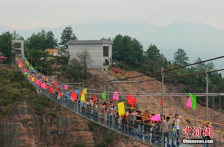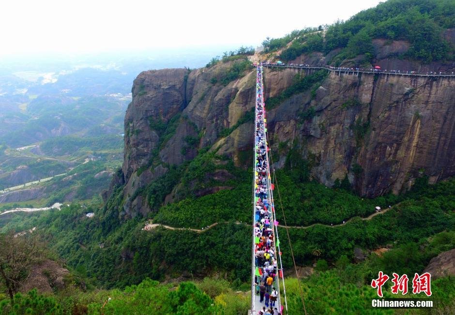 國(guó)慶節(jié)(建國(guó)記念日)連休4日目の4日、湖南省平江県石牛寨國(guó)家地質(zhì)公園の全透明高空ガラス橋に観光客が殺到した。観光客の殺到に対応するため、観光地は厳格な人數(shù)管理を?qū)g行した。中國(guó)新聞網(wǎng)が伝えた。(編集NA)