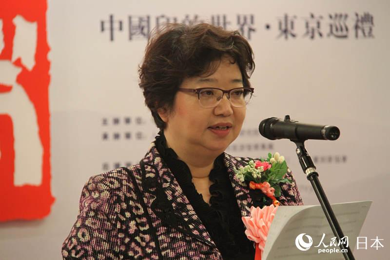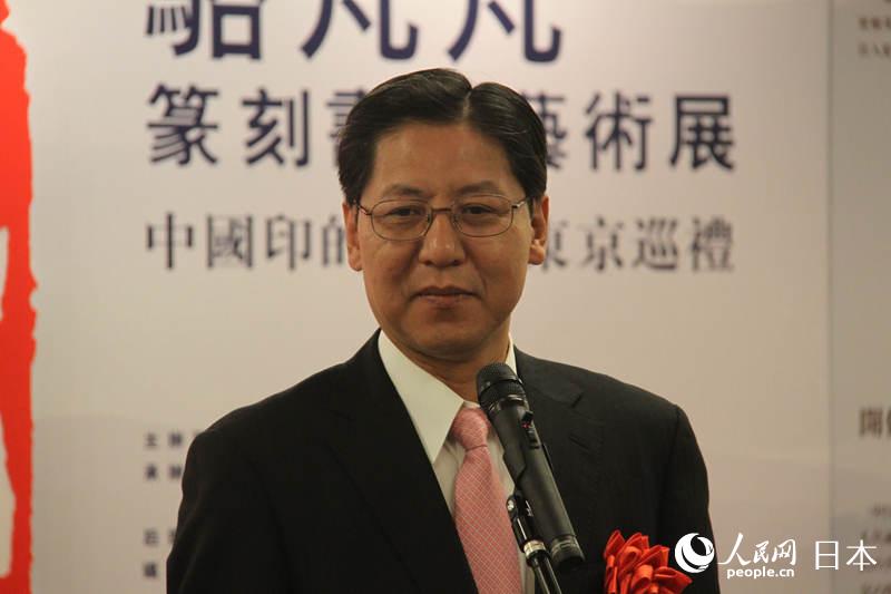 人民中國雑誌社の王漢平副社長は主催者代表として開幕式で挨拶を述べ、「中日両國はどちらも漢字を使用する。漢字蕓術(shù)の重要な表現(xiàn)形式である篆刻は、中國から日本に伝わり、日本の人々にも広く受け入れられた。今回の展覧會(huì)では、中日の政治家の揮毫を蕓術(shù)家が加工?創(chuàng)作した作品なども展示される。篆刻?書道作品の展示という形式を通じて、中日両國の文化交流を促進(jìn)できればと願(yuàn)う」と語った。