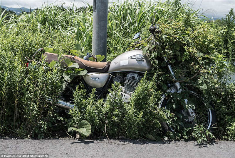 2011年に日本で発生した福島原発事故は、1986年チェルノブイリ原子力発電所の事故後、最も重大な原発事故となった。日本政府は半徑12?5キロメートル以內(nèi)を立ち入り禁止區(qū)域に指定し、16萬人が家を失った。4年が経過し、この地域はすっかり自然に飲み込まれてしまった。寫真:雑草が生い茂った道路はかつて車の行き來が激しい場所だった。被災(zāi)者は車を置いてまず避難した。(編集JK)