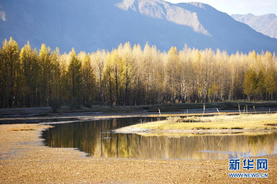 錦秋の候、西蔵(チベット)自治區(qū)の木々はすっかり色づいている。金色に輝く林と草地が秋晴れの真っ白な雲(yún)と相まって、美しい絵を一枚一枚描き出している。寫真はラサ湖畔での秋の風(fēng)景(10月7日撮影)。新華網(wǎng)が伝えた。(編集JK)