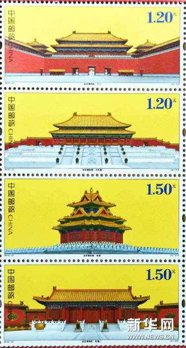 中國(guó)郵政は10月10日より「故宮博物院」記念切手(1組4枚。午門、太和殿、角樓、乾清門)を発行する。附票(切手とセットになる、絵柄の入った部分。実際に切手としては使用できない)の絵柄はそれぞれ、「白玉鏤雕竜鳳璧」、「水鼎」、「清明上河図」、「青花釉里紅開(kāi)光鏤花蓋罐」。価格は5.4元。新華網(wǎng)が伝えた。(編集YF)