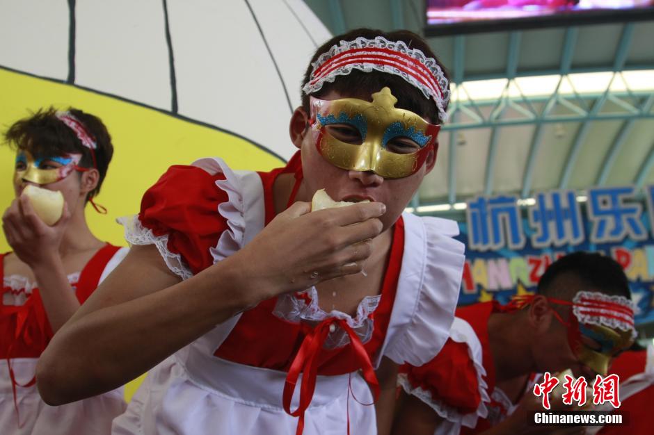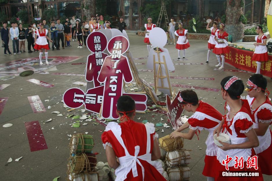 浙江省杭州市で10月9日、市內(nèi)の遊園地が「梨を食べて皿を割るストレス解消イベント」を開(kāi)催した。十?dāng)?shù)名の職員がロリータ衣裳を著てメイドに変身、「梨食い競(jìng)爭(zhēng)」をしたあと皿を投げつけストレス解消を行なった。世界保健デーの10月10日、主催側(cè)は100トンの廃棄陶磁器を用意し、観光客に感情やストレスを発散する機(jī)會(huì)を提供した。寫真はダンスでストレス解消する男性メイドたち。(編集JK)