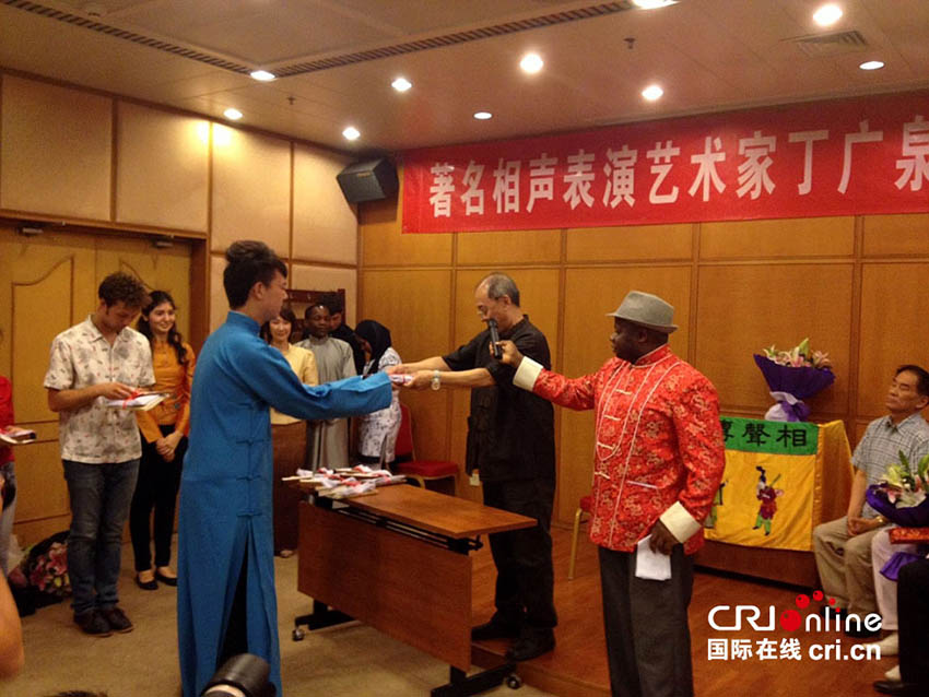 西田さんは現(xiàn)在、中國の伝統(tǒng)的な話蕓?相聲を?qū)Wんでいる。指導(dǎo)するのは有名な相聲師?丁広泉さん。「相聲との出會(huì)いは偶然。中國語のレベルを早く上げたくて、中國語の先生に『何かいい方法はないか』と聞いたら、『丁広泉さんが學(xué)校で授業(yè)をしに來られるから、聞きに行ってみたら』と言われた。そして、相聲を聞いてすぐに好きになった」と西田さん。