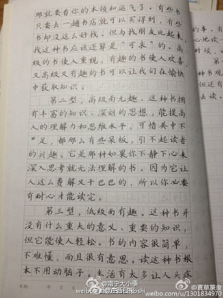 河北省衡水中高一貫校に通う生徒の「活字體」がネットで話題を呼んだ。その後、微博(ウェイボー)アカウントの當(dāng)代生活報(bào)も、「あるベトナム人留學(xué)生が書いた文字が秀逸な整った字體でとても美しい」と伝え、大勢(shì)の中國(guó)人ネットユーザーに敗北感を漂わせているという。これはゼロから中國(guó)語を?qū)Wび始めた広西大學(xué)のベトナム人留學(xué)生が入學(xué)1年後に書いた作文だ。一緒に見てみよう!広西日?qǐng)?bào)が伝えた。(編集JK)