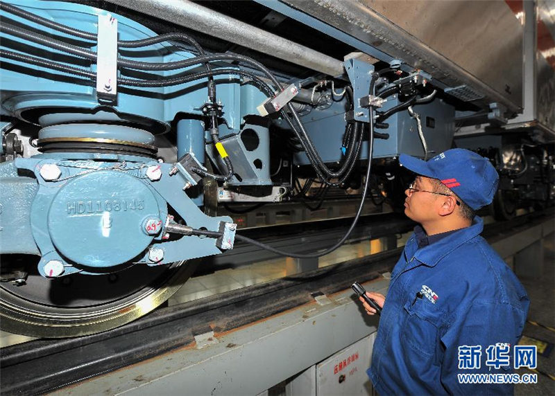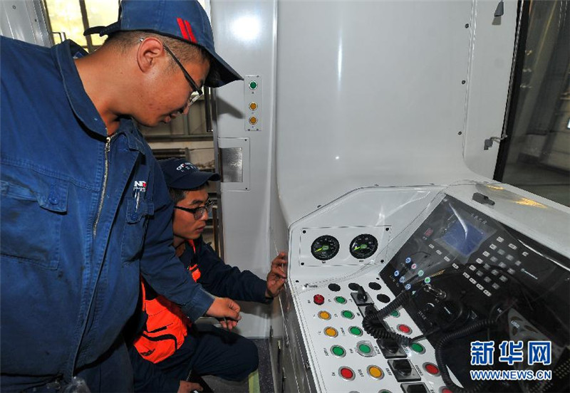 この列車は4両編成で、最高運(yùn)行速度は時速80キロに達(dá)する。中國が獨(dú)自に開発した自動化水準(zhǔn)が最高の地下鉄車両で、自動的に電源を入れ、點(diǎn)検を行い、運(yùn)行し、上り坂?下り坂を通過し、駅で正確に停車し、ドアを開閉することができる。また故障が生じた場合にも自動的に回復(fù)する。寫真は10月15日、同車両の最終調(diào)整作業(yè)をする従業(yè)員。(編集YF)