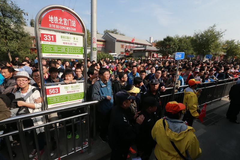 紅葉の季節(jié)の最初の週末、北京の香山公園の観光客は昨年同時(shí)期に比べ減少し、八達(dá)嶺長(zhǎng)城景勝地の観光客數(shù)は昨年とほぼ同じで、旅行快適指數(shù)は比較的高かった。香山に紅葉を見に行く市民は19日午前に大幅に増加し、各路線バスは人でぎゅうぎゅう狀態(tài)だ。香山環(huán)島から香山公園正門まで2キロほどの距離を路線バスで1時(shí)間近く走った。だが、景勝地に入ってからの観光客數(shù)は混雑するには至っていない。人民網(wǎng)が伝えた。(編集JK)