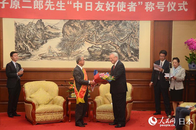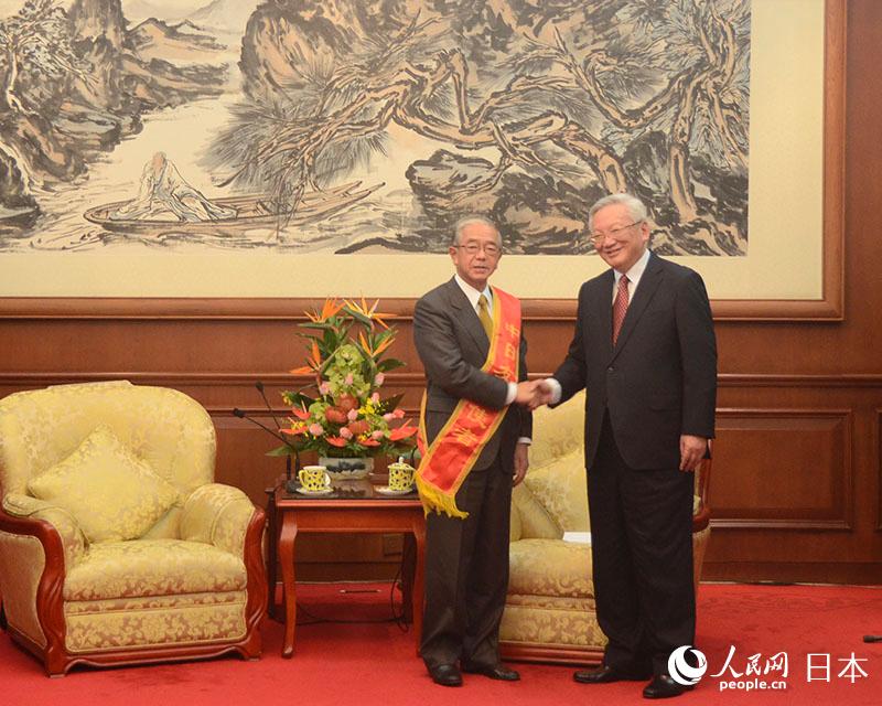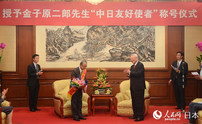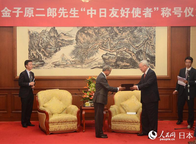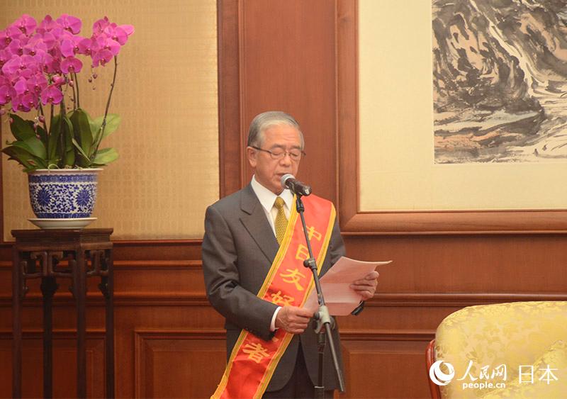 授與式で挨拶に立った唐家セン會長は、「金子先生は、長崎県知事在任中、中日友好事業(yè)に積極的に力を盡くし、長崎県と中國関係省市の友好交流と協(xié)力の推進に取り組まれた。中國が大きな自然災(zāi)害に見舞われた時、金子先生は自ら街頭に立って義捐金を集め、被災(zāi)者に対して貴重な精神的?物質(zhì)的支援を行って下さった。金子先生が今後も、中日友好事業(yè)に関心と支持を示し、中日関係が絶えず発展するために新たなより大きな貢獻を行って下さるよう、心から期待している」と述べた。