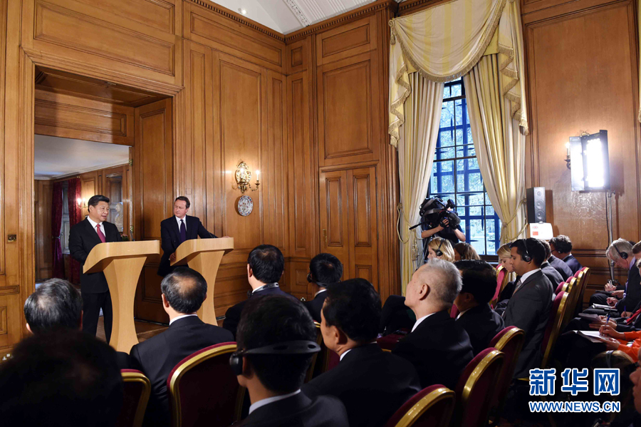 キャメロン首相は「習(xí)主席の今回の訪英は実り豊かな成果を挙げ、雙方は多くのプロジェクト、経済?貿(mào)易協(xié)定について合意した。これは両國関係の発展を力強(qiáng)く促す。英國は西側(cè)における中國最良の協(xié)力パートナーとなることを望んでおり、金融、エネルギー、クリエイティブ産業(yè)、ビザ円滑化などの分野で協(xié)力を拡大する。アジアインフラ投資銀行の設(shè)立に積極的に參加し、『1ベルト、1ロード』の枠組で中國側(cè)との協(xié)力を強(qiáng)化することを積極的に検討する。英國は経済調(diào)整の過程にあり、中國企業(yè)による投資?事業(yè)展開を歓迎する。英國はEUが中國と1日も早く自由貿(mào)易協(xié)定を締結(jié)することを支持し、歐州?中國関係の発展を促すために積極的に貢獻(xiàn)する」と表明した。(編集NA)