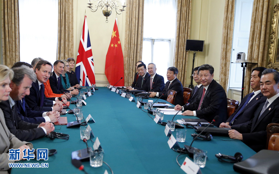 習(xí)主席は「英國が中國に対して最も開かれた協(xié)力パートナーとなる意向を表明したことを中國側(cè)は稱賛する。英側(cè)と共に、中英関係のより高い水準(zhǔn)での持続的安定を確保し、中英協(xié)力のより広い分野での開放?包容を堅持し、中英関係のより大きな範(fàn)囲での互恵?ウィンウィンを?qū)g現(xiàn)したい。中英雙方は主権、獨(dú)立、領(lǐng)土の一體性を互いに尊重し、各自の選択した発展路線を互いに尊重する必要がある。協(xié)力?ウィンウィンによって相互関係をうまく処理すべく共に努力する必要がある。開放?包容の心で相手國を受け止める必要がある。事実が証明するように、相互尊重、平和共存、包容?相互參考の原則を順守しさえすれば、中英関係は持続的に安定して健全に発展できる。中國側(cè)はイングランド北部への中國企業(yè)の投資を奨勵し、西側(cè)の大國として初めてアジアインフラ投資銀行の創(chuàng)設(shè)メンバーとなるという英國の決定を歓迎する。歐州復(fù)興開発銀行への中國の參加を英側(cè)が支持することを希望する」と強(qiáng)調(diào)した。