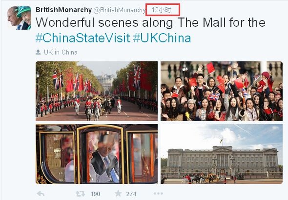 エリザベス女王はツイートの際、中國語を使って習主席と彭麗媛夫人への歓迎の思いを伝えたほか、訪問の様子を捉えたさまざまな寫真も投稿している。