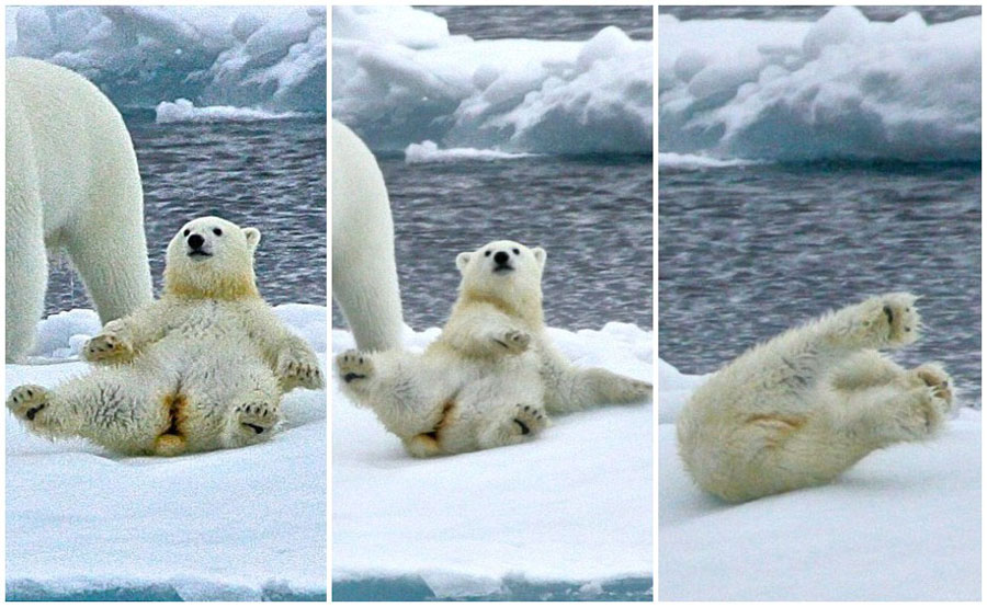 カメラマンのナターシャ?ビーンズさんがこのほど、北米大陸と北極諸島の間の西北航路を探検した際、「すっ転んだ」ホッキョクグマの赤ちゃんが必死でもがいている面白いシーンを船上から捕えた。英國デイリーメール」の10月19日付の報道を引用して環(huán)球網(wǎng)が伝えた。