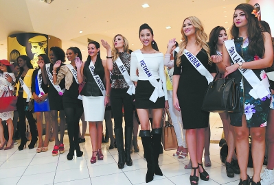 日本の東京にある百貨店の伊勢(shì)丹で現(xiàn)地時(shí)間10月21日、ミス?インターナショナル世界大會(huì)のメキシコ代表ロレーナさんや各國(guó)の代表が売り場(chǎng)に到著し微笑んでいる。2015ミス?インターナショナルの決勝大會(huì)は11月5日、日本の東京で開催予定、70の國(guó)と地域の美女たちがこの大會(huì)に參加する。中國(guó)新聞網(wǎng)が伝えた。(編集JK)