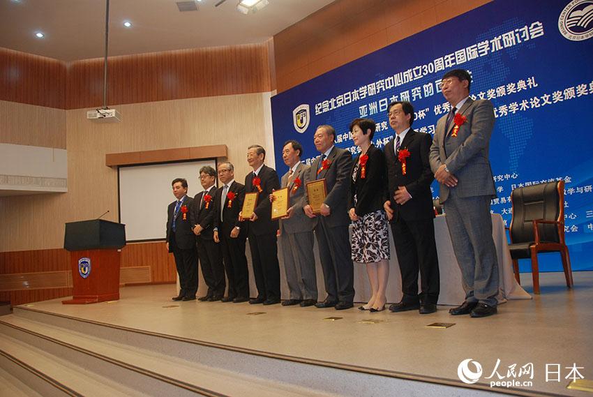 北京日本學(xué)研究センターは30年來、中日各界の専門家や友好の人々の多大な支持を集めてきた。中日交流の上に貢獻(xiàn)してきた諸先輩の支持と指導(dǎo)に感謝するため、開幕式では北京日本學(xué)研究センター顧問功労賞の授與式も行われ、文化部(?。┰辈块L(zhǎng)で、中華日本學(xué)會(huì)名譽(yù)會(huì)長(zhǎng)の劉徳有氏、在日本國(guó)大阪総領(lǐng)事館元領(lǐng)事の劉智剛氏、在日本國(guó)大使館元教育公使で、教育部(?。┲袊?guó)語(yǔ)國(guó)際普及リーディンググループ弁公室顧問の李東翔氏らに授與された。