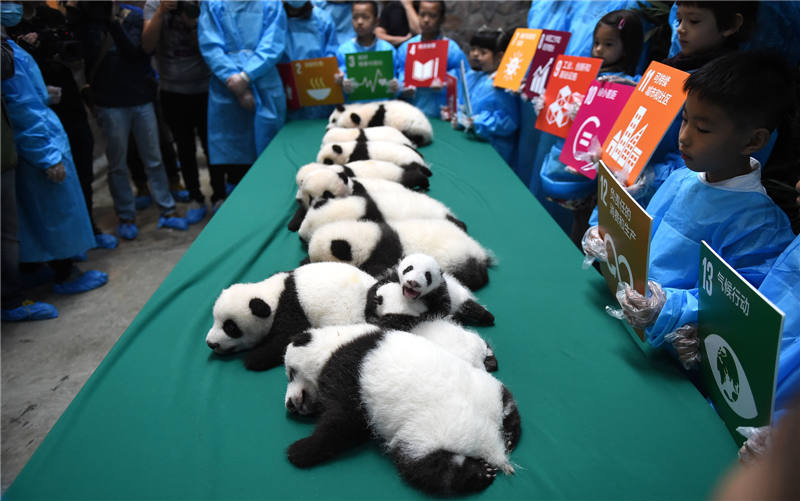 成都ジャイアントパンダ繁殖研究基地(四川省成都市)で2015年生まれの赤ちゃんパンダが「幼稚園」に「入園」した。[入園」した13頭の赤ちゃんパンダのうち6組が雙子だ。年齢が最も上の科琳姉妹はもうすぐ生後4か月、最も下の慶賀兄弟は満1か月過ぎたところで、彼らの最も可愛い盛りの時期だ。華西都市報が伝えた。(編集JK)
