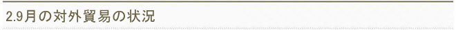 9月の全國輸出入総額が前年同月比8.8%減の2兆2200億元になったと発表した。うち輸出額は1.1%減の1兆3000億元、輸入額は17.7%減の9200億元で、黒字額は96.1%増の3762億元。ドル換算では、全國輸出入総額は11.4%減の3508億ドル。うち輸出額は3.7%減の2056億ドル、輸入額は20.4%減の1452億ドル、黒字額は93.3%増の603億ドル。