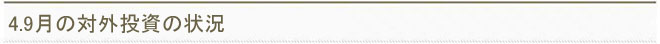 9月の対外直接投資額は、前年同月比5.2%増の103億ドル。そのうち株式投資とその他の負(fù)債性金融商品への投資は7.4%増の89億ドルで、全體の86.4%を占めた。収益の再投資は6.7%減の14億ドルで、13.6%を占めた。
