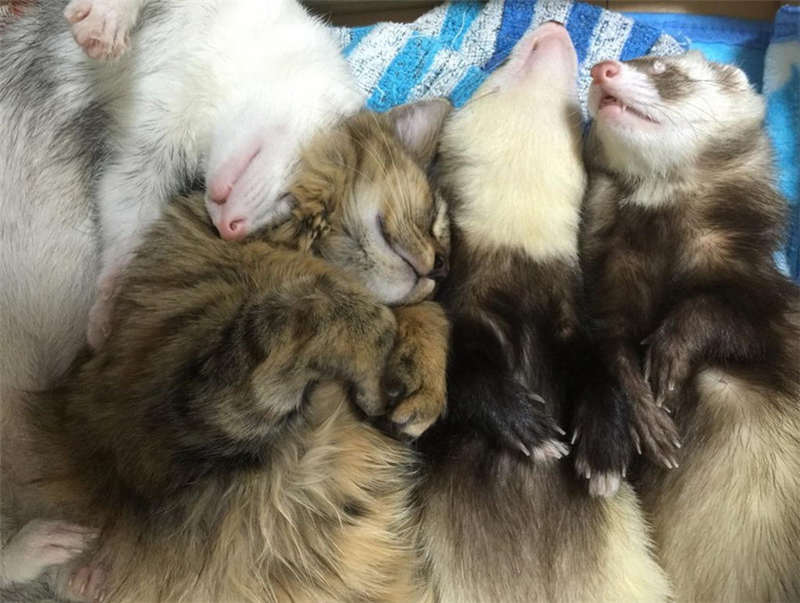 日本の野良貓が親切なフェレットたちに家族の一員として迎えられた。コマリという名のこの野良貓は街をうろついていた時、今の飼主が家に連れ帰った。飼主の家にはすでに6匹のフェレットを飼っていたが、幸運なコマリちゃんはこの毛がふさふさの仲間たちに全く拒まれることはなかった?,F(xiàn)在、彼は毎日フェレットたちと一緒にご飯を食べたり遊んだり、幸せな生活を送っている。人民網(wǎng)が伝えた。(編集JK)