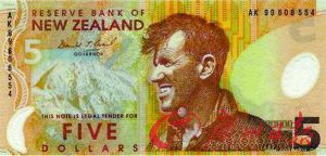 現(xiàn)在流通しているニュージーランドドルの紙幣の額面は5、10、20、50、100。うち、5ドルの表面の肖像には、ニュージーランド人に愛されている、人類初となるエベレスト山頂?shù)竭_(dá)に成功した登山家のエドモンド?ヒラリーが採用されている。また、ニュージーランドの南島にあるアオラキ/マウント?クック國立公園も描かれている。