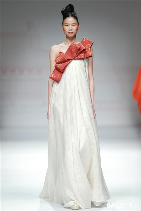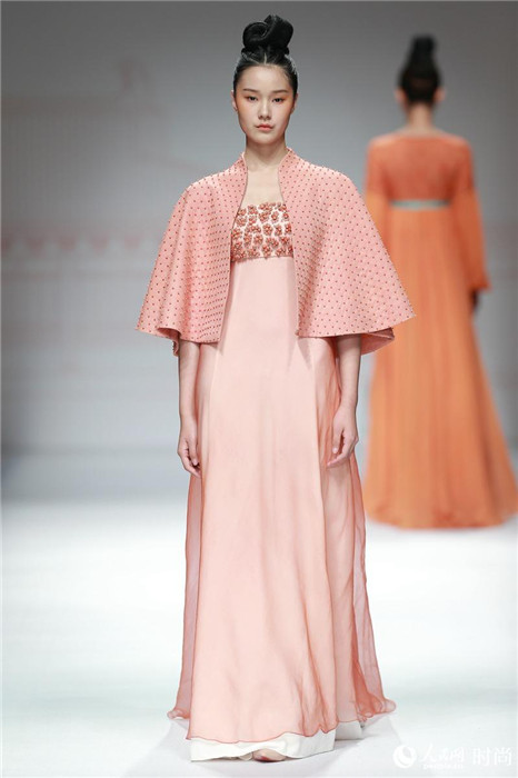 今回の中國國際ファッションウィークにおいて、気鋭のデザイナーの代表として、楚艶は如何にしてうまく現(xiàn)代の服裝を利用し唐時代のファッショントレンドをリードするかを自ら示した。貿(mào)易が発達し、外交が盛んな唐時代、ファッションの流行は広い包容力を持っていた?!篙Xい、薄い、柔らかい」シルクや布は常に使用されていた素材だ。色でも赤、深紅、青、黃、白などタブーは殆どない。今回の発表會の衣裝は抽象的に描かれた敦煌の壁畫や寶相花(中國伝統(tǒng)の吉祥紋様)が組み入れられ、どの衣裝も唐時代の雰囲気が色濃く表れていた。(編集JK)