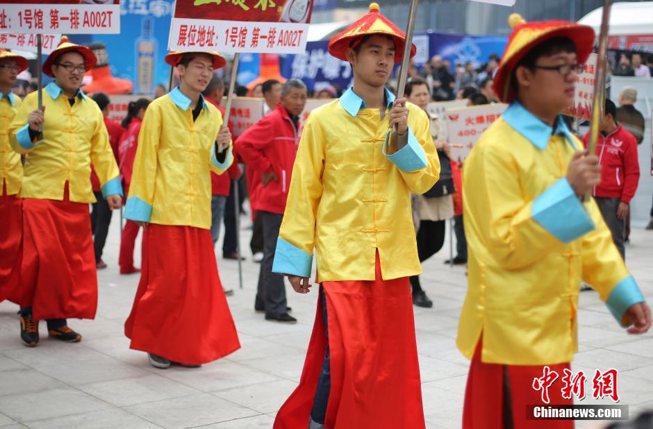 南京國際展示センター(江蘇省)で開催されている全國ドリンクフェアで10月29日、「近衛(wèi)兵」、「お姫様」、美女などが次々に登場し、見學者に自社製品の販促PRを行なっていた。中國新聞網(wǎng)が伝えた。(編集JK)