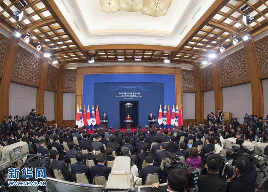 第6回中日韓首脳會議が1日にソウルで行われた。中國の李克強総理、韓國の樸槿恵大統(tǒng)領、日本の安倍晉三首相が出席した。3カ國首脳は中日韓協(xié)力について振り返り、展望を示し、地域?國際問題について見解を交わした。人民日報が伝えた。