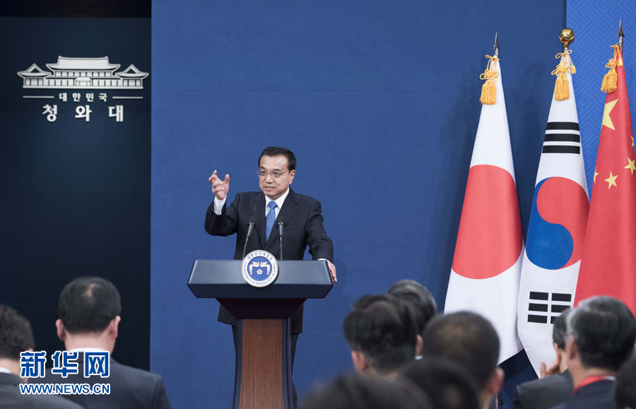 李総理は「中日韓首脳會議が3年ぶりに再開されたこと自體が貴重なことだ?,F(xiàn)在世界経済が回復力に乏しく、新興エコノミーが下押し圧力に直面し、アジア経済の展望に世界が注目する中、中日韓は共同で構(gòu)造改革の推進に盡力し、イノベーションによる駆動を強化し、相互開放を拡大し、協(xié)力の深化を通じて自國経済の高度化と発展を促進し、東アジアさらにはアジア経済の落ち著いた発展につなげるべきだ」と表明。