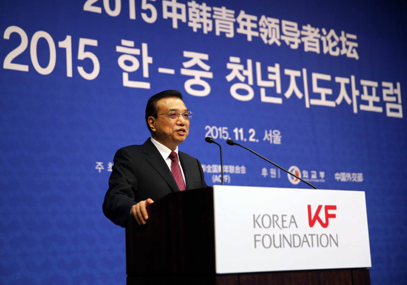 李総理は「現(xiàn)在中國(guó)はイノベーション駆動(dòng)型発展戦略、大衆(zhòng)による起業(yè)?イノベーションを?qū)g施しており、韓國(guó)も『創(chuàng)造型経済』に盡力している。両國(guó)の青年が中韓の國(guó)家発展戦略の連結(jié)を契機(jī)に、衆(zhòng)知を集め、大衆(zhòng)の力を集め、イノベーション起業(yè)において中韓協(xié)力のより良い將來(lái)を築くことを希望する。フォーラムが中韓両國(guó)各界の青年エリートの踏み込んだ交流、イノベーション協(xié)力の場(chǎng)を提供することを希望する。また、両國(guó)の青年がフォーラムを通じて友情を深め、イノベーション起業(yè)の夢(mèng)を連結(jié)し、中韓の各分野の協(xié)力の新戦力となることを希望する」と述べた。