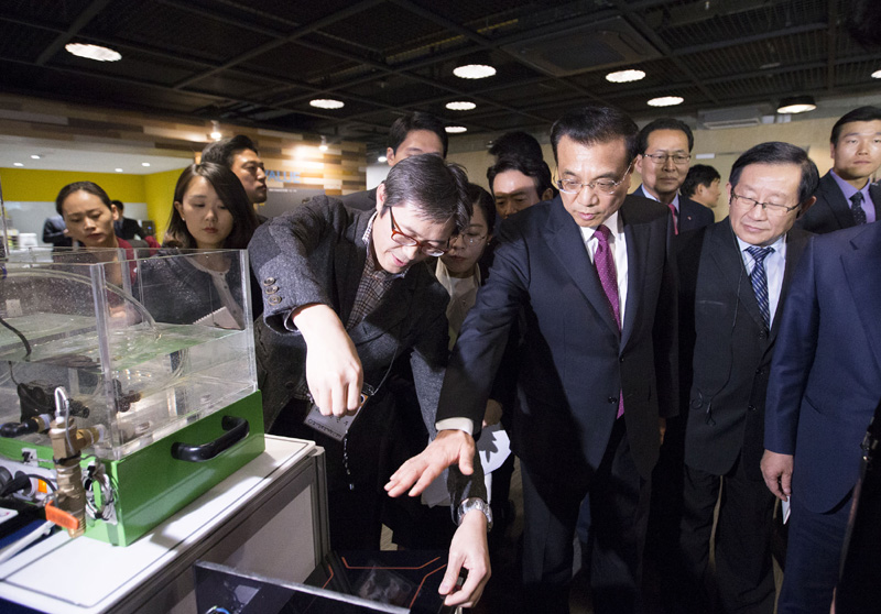 李総理はセンターの建設(shè)と発展について説明を受けた後、モノのインターネット技術(shù)、モバイル設(shè)備技術(shù)、3Dプリンター研究室を視察し、技術(shù)の進(jìn)展を詳しく把握した。李総理は「イノベーション起業(yè)に國境はない。中韓は新たな技術(shù)革命のチャンスと世界の発展の大勢を把握し、各自の國內(nèi)産業(yè)高度化のニーズに順応し、各自のイノベーション発展戦略のより良い連結(jié)を推進(jìn)するべきだ。第1に政策、法律面で意思疎通と交流を強(qiáng)化し、相互參與を奨勵し、優(yōu)勢資源を整理統(tǒng)合し、産業(yè)協(xié)力を深化する。第2に共同開発を強(qiáng)化し、イノベーションの連動を築き、両國の起業(yè)者が一層腕を振るうことのできる場を提供する。第3に國際生産能力協(xié)力の大きな流れに順応し、第3國市場を連攜して開拓し、中韓の実務(wù)協(xié)力により広大な空間を切り開く」と指摘した。(編集NA)