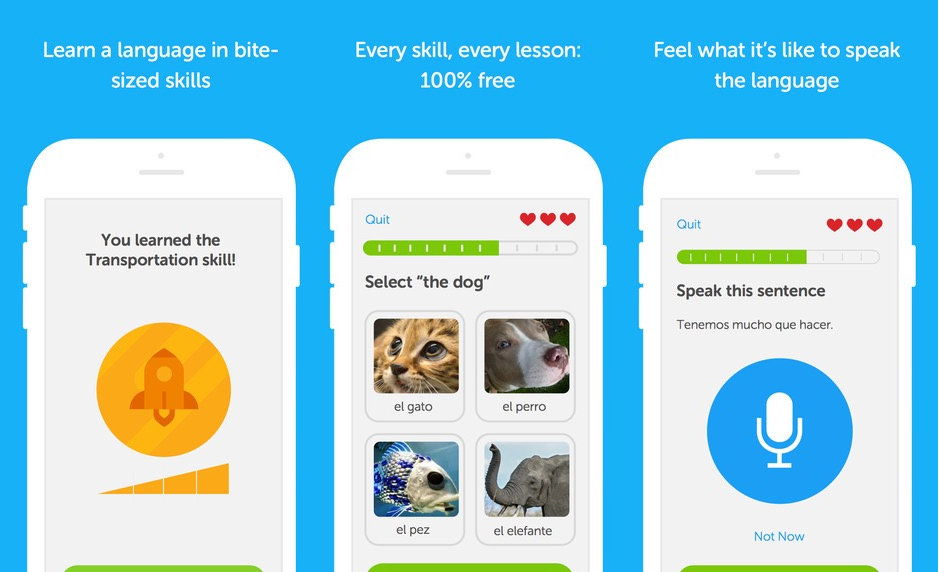 Duolingoは楽しくためになる無料言語學(xué)習(xí)アプリだ。言語學(xué)習(xí)の過程を異なる段階に分けており、利用者は自らのレベルに基づき難易度を選択できる。各段階の學(xué)習(xí)を終えると、利用者は経験値を手にすることができる。Duolingoの目標(biāo)は、対応する13言語のうち一つをマスターさせることで、復(fù)習(xí)を促すこともできる。