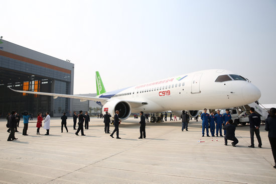 7年間の設(shè)計?開発を経て、中國製大型旅客機C919の1番機が11月2日、中國商用飛機有限責(zé)任公司が新たに建設(shè)した総組立製造センター浦東基地の工場內(nèi)で正式にラインオフした。