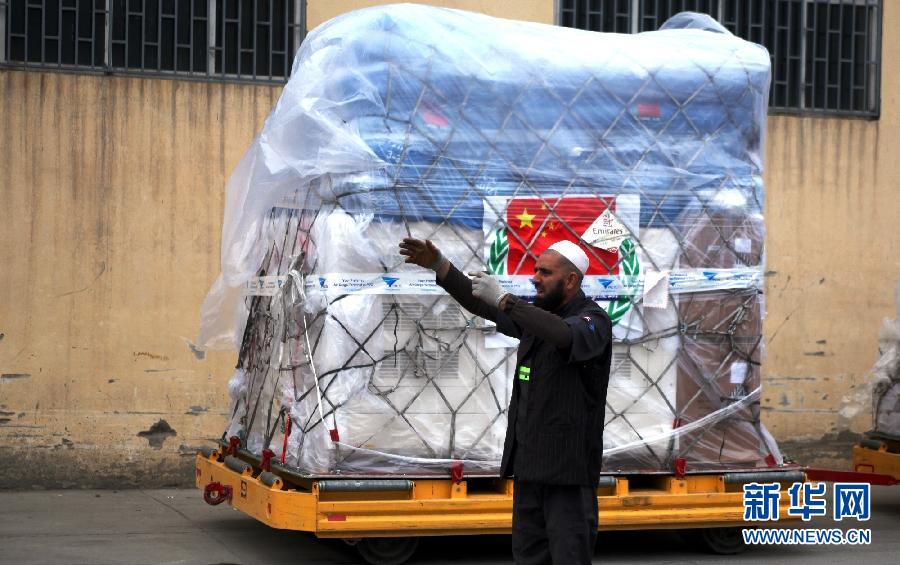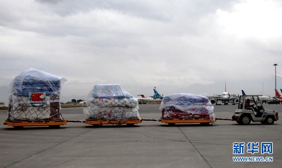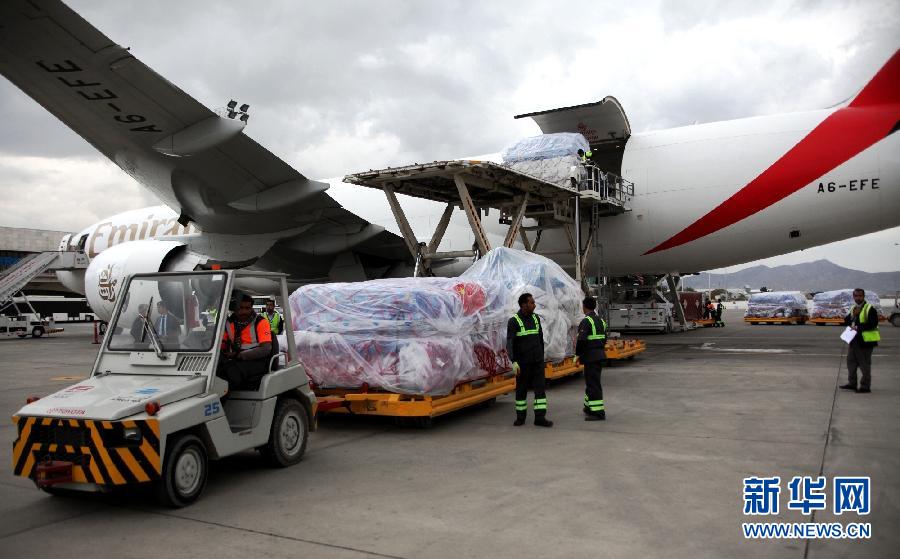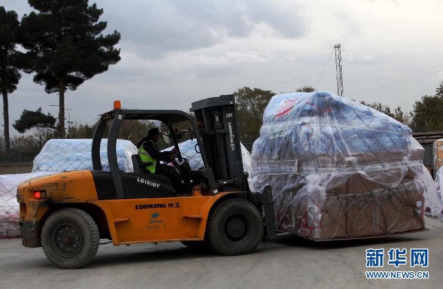アフガニスタンのカブール國際空港で11月3日、男性がフォークリフトで中國政府の支援物資を運(yùn)んでいる。中國政府がアフガニスタン政府に提供した1000萬元相當(dāng)(約1億9千萬円)の人道支援物資は現(xiàn)地時(shí)間3日にアフガニスタンの首都カブールに到著した。新華網(wǎng)が伝えた。(編集JK)