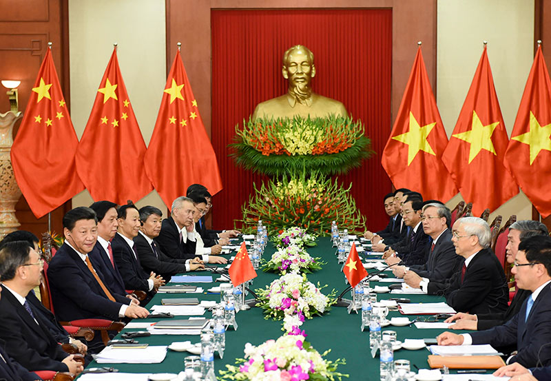 習(xí)近平中共中央総書(shū)記(國(guó)家主席)は5日、ベトナム共産黨のグエン?フー?チョン書(shū)記長(zhǎng)とハノイで會(huì)談した。雙方は「長(zhǎng)期的安定、未來(lái)志向、善隣友好、全面協(xié)力」の方針と「良き隣人、良き友人、良き同志、良きパートナー」の精神を堅(jiān)持し、両國(guó)の包括的?戦略的協(xié)力パートナーシップの持続的で健全な安定した発展を促すことで合意した。