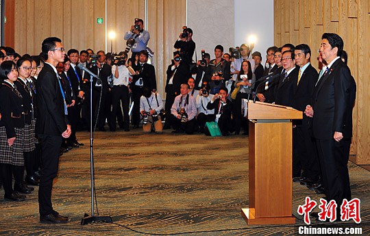 日本の安倍晉三首相が6日午後、招待された中國の高校生99人の表敬を官邸で受けた。中國新聞網(wǎng)が報(bào)じた。