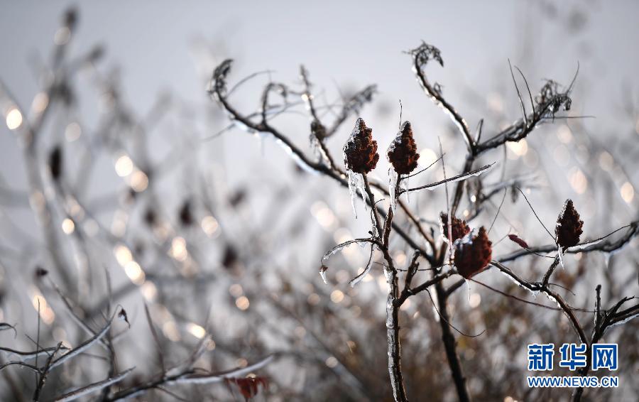 遼寧省瓦房店市の木々が11月9日、氷に覆われている。同日、みぞれが降った同地區(qū)の木々がそれぞれ氷に覆われ、太陽(yáng)の光の中で透き通り、美しく輝いている。新華網(wǎng)が伝えた。(編集JK)