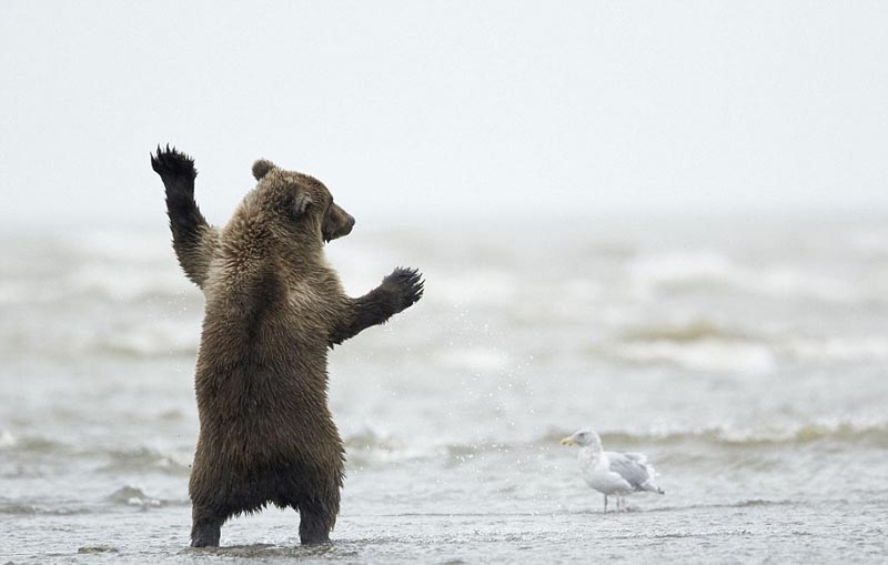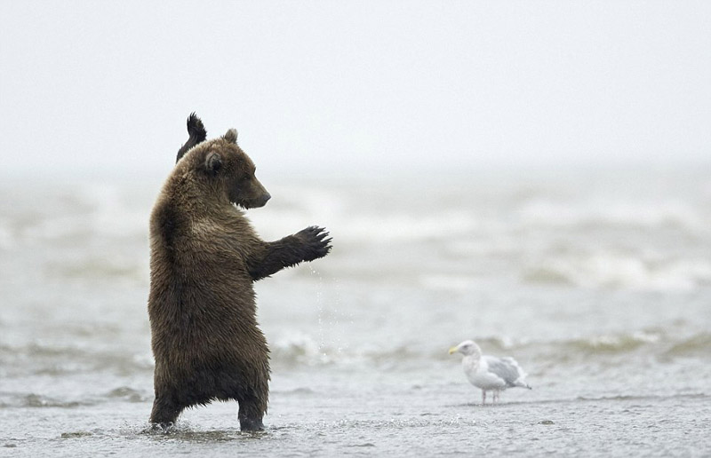 英國(guó)のカメラマン、マーク?シーソン氏がこのほど米國(guó)アラスカ州にあるレイク?クラーク國(guó)立公園の海岸で面白いシーンを撮影した。ヒグマの赤ちゃんが興味津々な2羽のカモメの前でホットなディスコダンスを披露している。英國(guó)「デイリーメール」紙の11月8日付の報(bào)道を引用して國(guó)際在線が伝えた。(編集JK)