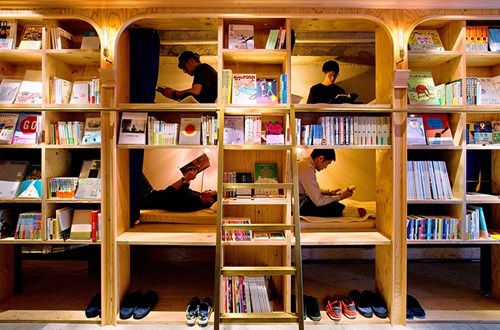 東京に「泊まれる書店」が登場した。本棚の中に二段ベッドが設(shè)けられ、來店客は本棚に陳列された書籍約1700冊を自由に閲覧できるほか、そのままベッドで睡眠を取ることもできる。店內(nèi)にはベッド30床にバス、トイレなどの共用施設(shè)が備えられている。