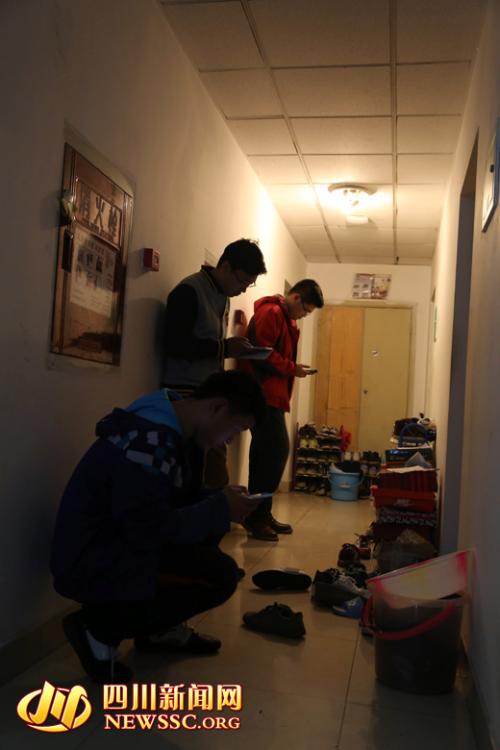 時計の針が午前0時を回り、寢室は消燈時間を迎えた。「ダブル11」買物祭り當日がいよいよやって來た。男子學生寮の廊下では、數(shù)名の學生が、廊下の証明を頼りに、一心不亂に攜帯を見つめていた。(編集KM)
