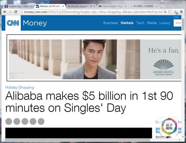 「ダブル11」に狂喜したのは、中國のネットショッピング消費者だけではなかった。海外メディアも、この様子を大々的に報道した。英BBCは、「中國のダブル11は、年間最大のネットショッピング?デーとなった」とストレートに表現(xiàn)した。同メディアは、アリババは、ダブル11當(dāng)日の最初の1時間で約40億ドル(約4900億円)の売上を記録、世界電子商取引分野での重大事件となったと報じた。
