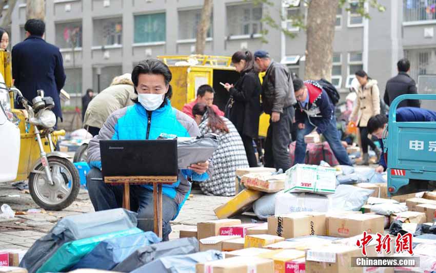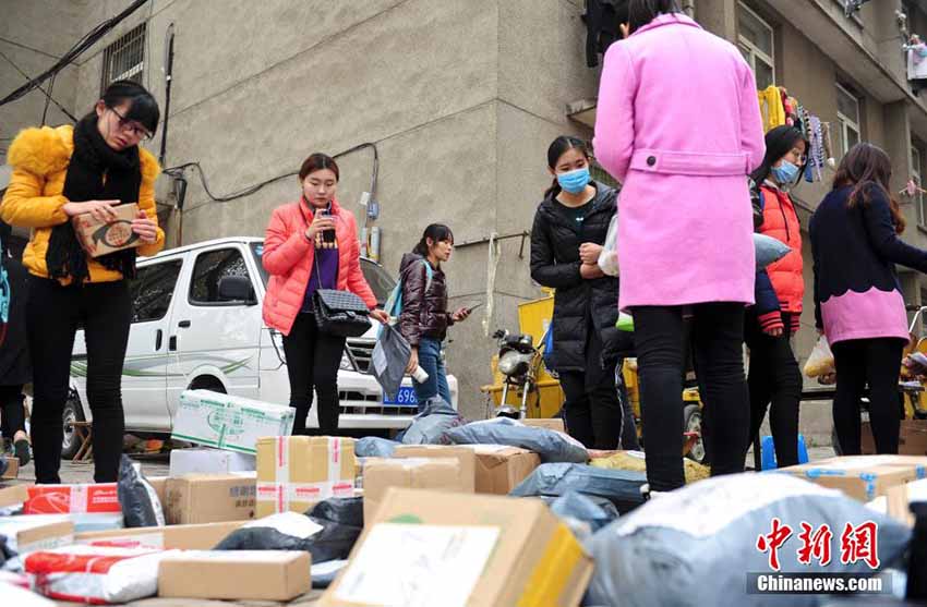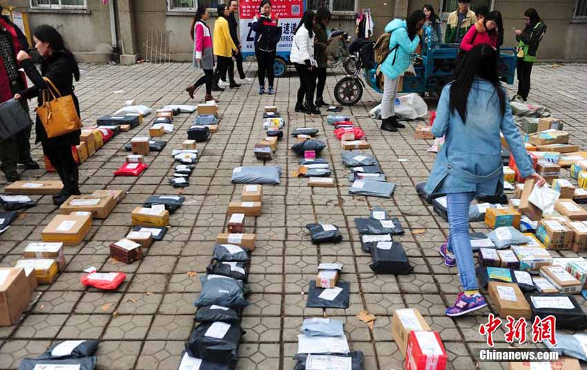 中國國民の年に一度のショッピングの祭典が11月11日(獨身の日)に幕を開けた。山東省済南市の宅配便業(yè)界はいち早く荷物の配送を開始した。済南市の某大學(xué)にある速達配送便置き場は學(xué)生たちの宅配便で溢れかえり、學(xué)生たちは次々に自分の荷物を受け取っていた。中國新聞網(wǎng)が伝えた。(編集JK)