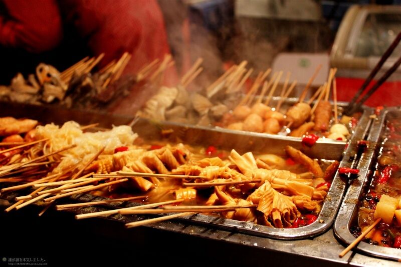 夏の日の夜、北京の街角を歩いていて初めてマーラータンを見た。小さなお店だがとても賑わっていて、青菜や魚肉が串にささり、湯気が立つ真っ赤なスープの中に入れられなかなかいい匂いを漂わせていた。食後ではあったが、思わず手が伸びた。作り方は日本のおでんに似ていると思ったが、味はまったく別物で、香りよし、辛さよしのなんとも言えないウマイ料理であることを知った。