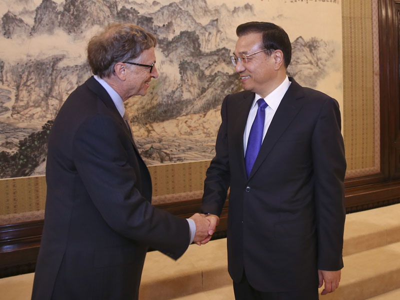 李克強総理は12日午後、ビル?ゲイツ氏と中南海の紫光閣で會談した。人民日報が伝えた。