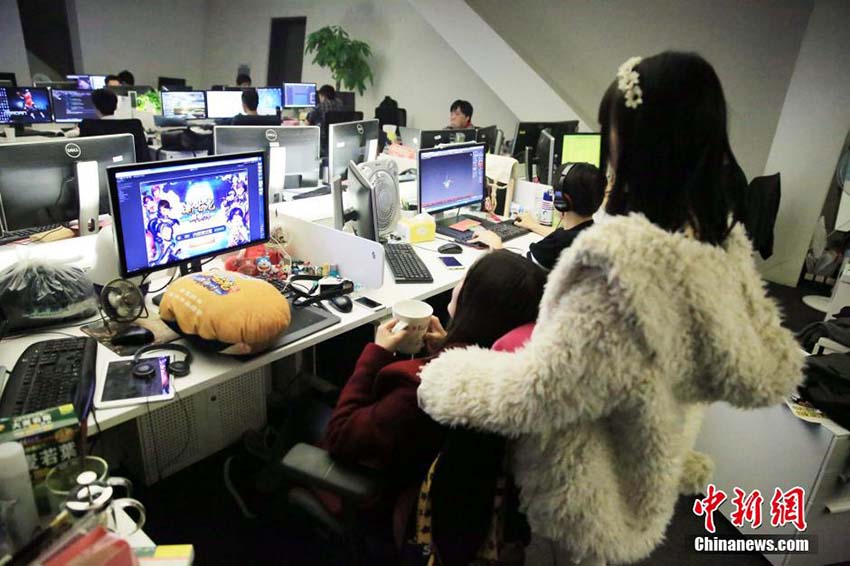 上海のゲーム會(huì)社のプロジェクトチームが11月10日、男性プログラマーへの「ダブル11」(11月11日、中國で「獨(dú)身の日」と呼ばれる)の「福利厚生」として特別に2人の女性ゲーム開発応援師を雇った。プログラマー応援師は今年のインターネット業(yè)界の新興ビジネスで、仕事內(nèi)容は質(zhì)の高い開発業(yè)務(wù)を遂行できるようプログラマーを応援することだ。中國新聞網(wǎng)が伝えた。(編集JK)